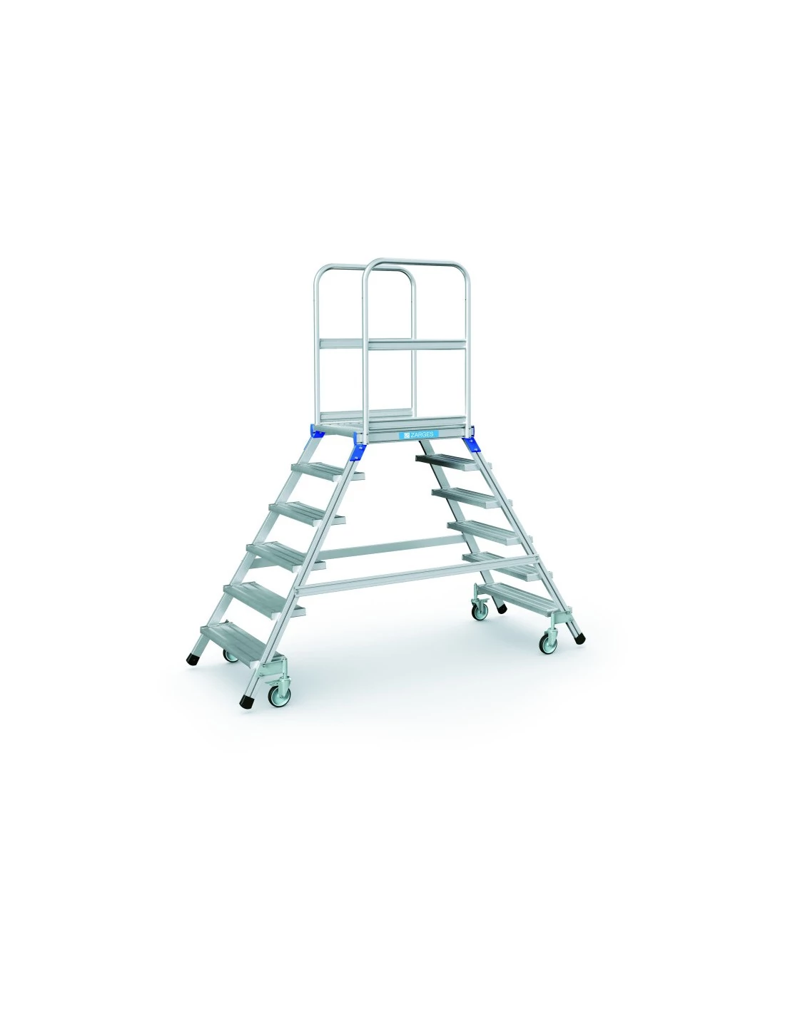 ZARGES Két oldalon járható gurulós dobogós lépcső 2x6 bordázott alu