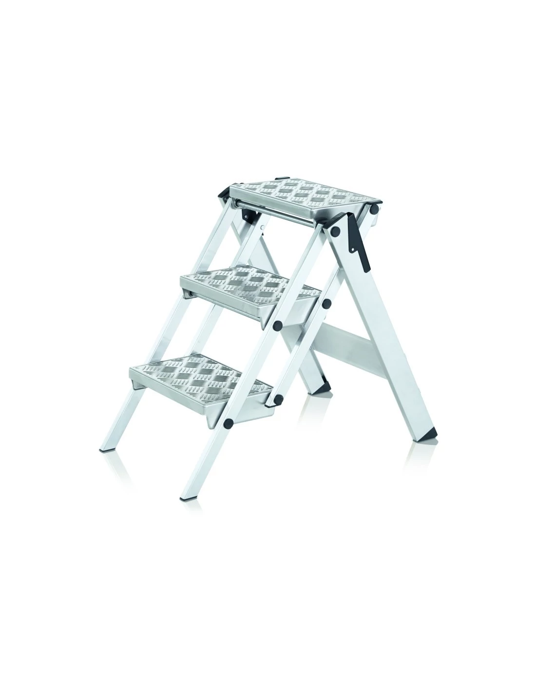 A bevált létra- és állványtechnika megoldás kompakt méretekkel összecsukható állapotban és állásbiztonsággal a kényelmes gumibevonatnak köszönhetően.