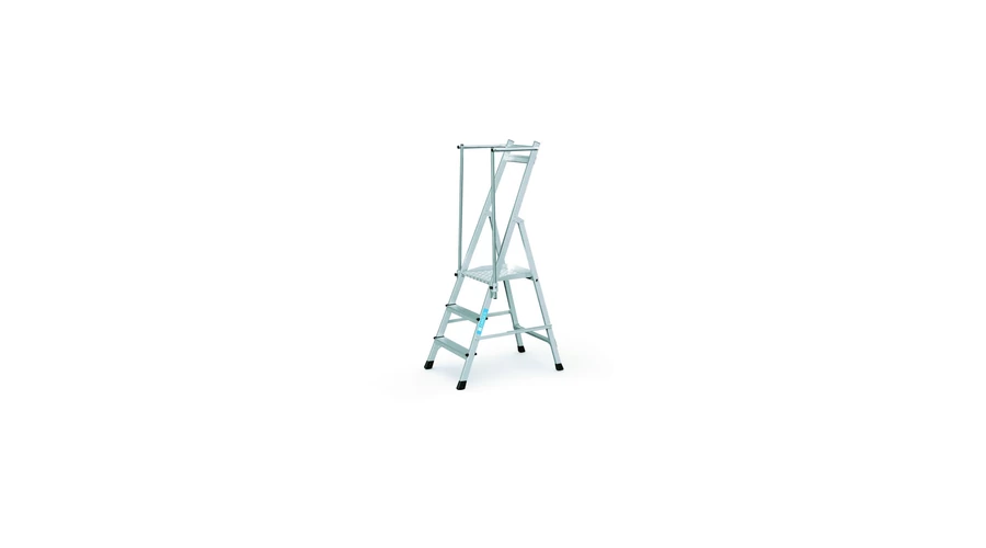 A rendkívül könnyű dobogós létra: Súlya könnyű, könnyen kezelhető a lehajtható kapaszkodók által, és ugyanakkor kényelmes is a nagy dobogóméretnek köszönhetően.