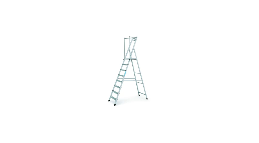 A rendkívül könnyű dobogós létra: Súlya könnyű, könnyen kezelhető a lehajtható kapaszkodók által, és ugyanakkor kényelmes is a nagy dobogóméretnek köszönhetően.